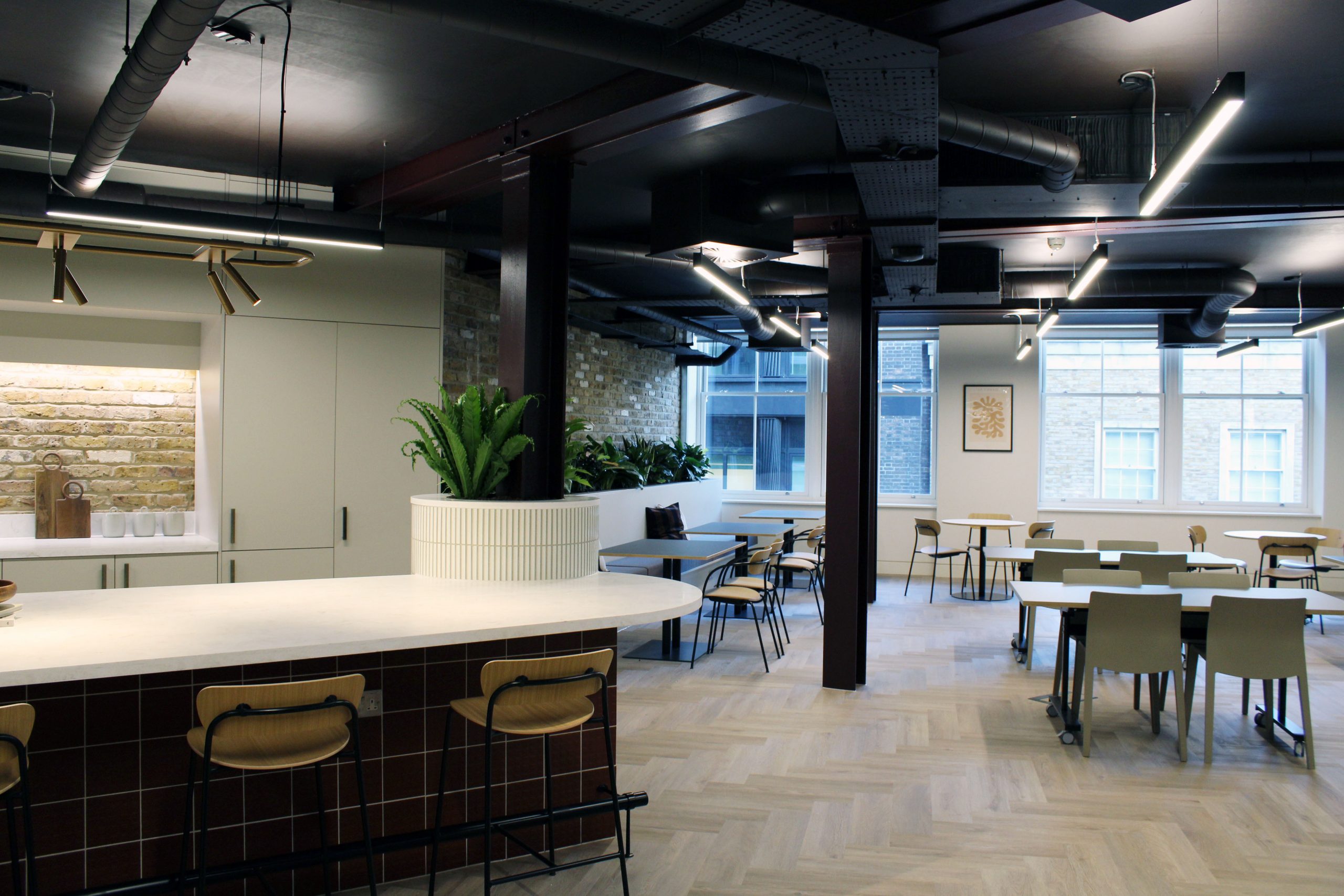 The works involved an initial strip-out of the unit left by the previous tenant, followed by a refurbishment of the space to create a contemporary, flexible office environment that echoes Shoreditch’s unique aesthetic.