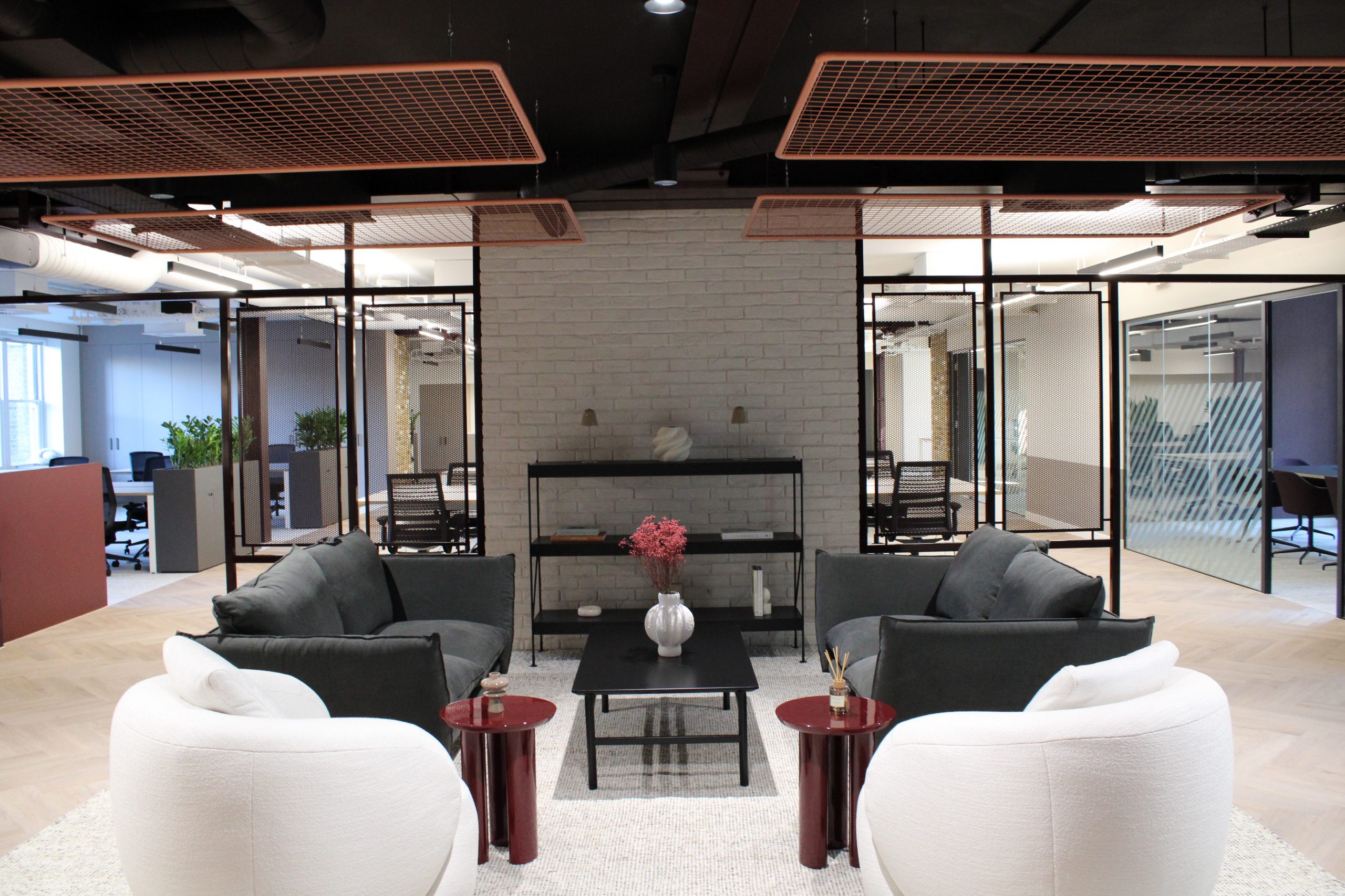 The scope of works included the rationalisation of the existing layout; modifications and upgrades to MEP services to suit the new configuration; installation of 5 new meeting rooms and 3 focus booths, a bespoke tea point; refurbishment of demised WCs; full redecoration; and the addition of planting and interior dressing, alongside enhancements to the communal facilities and elevators.